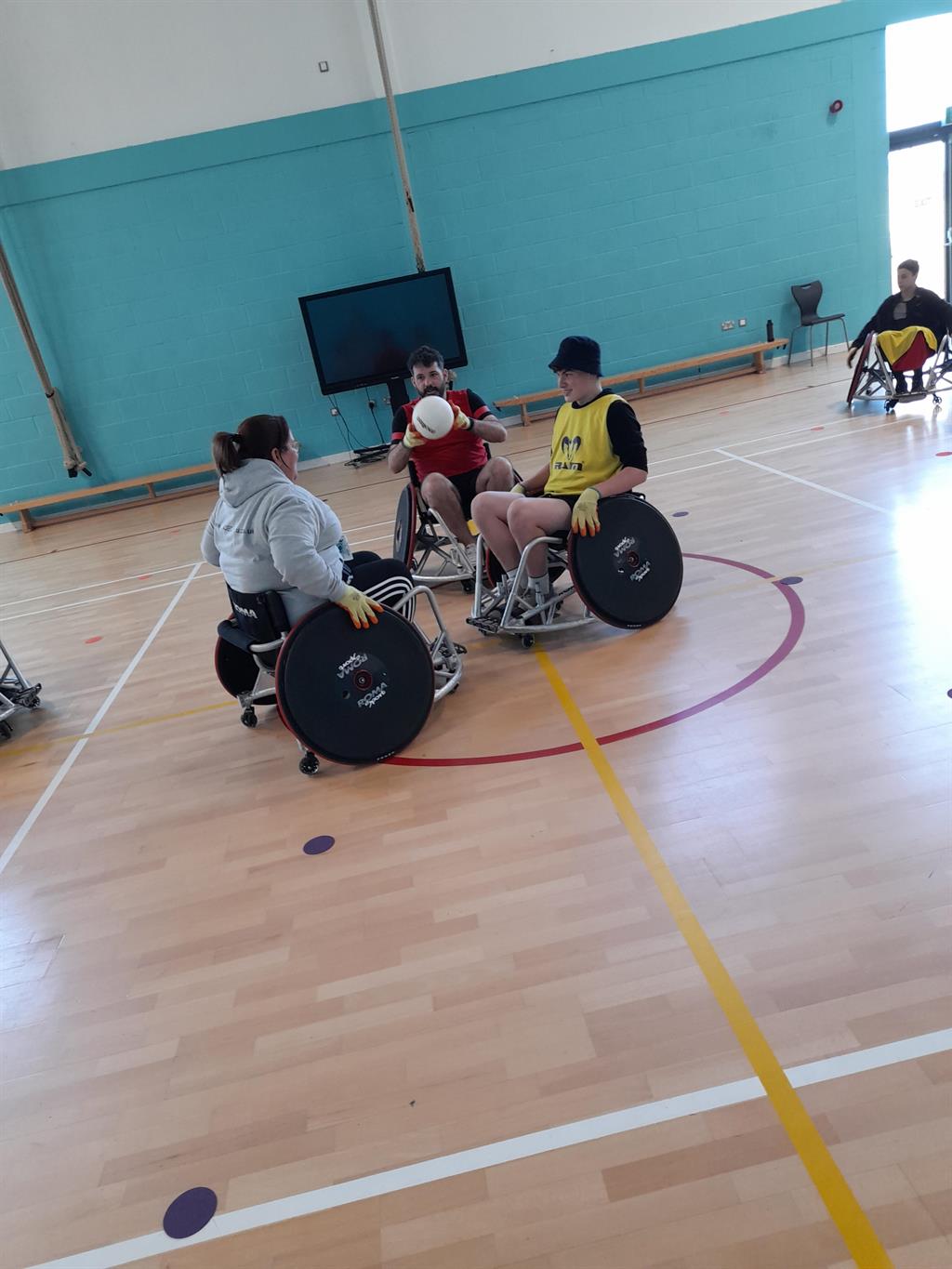 Cafodd blant y lluoedd arfog yn Ysgol Harri Tudur gyfle i roi cynnig ar rygbi cadair olwyn i ddathlu Mis y Plentyn Milrwrol.