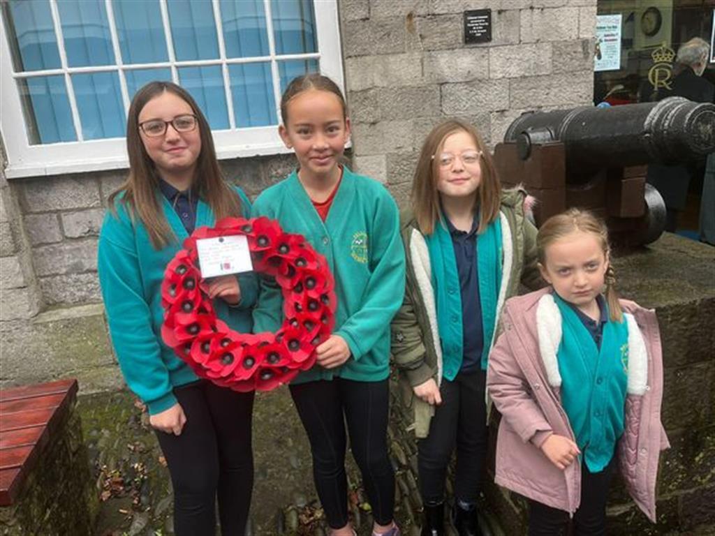 Pupils from Golden Grove School in Pembroke laid a wreath and joined others at the war memorial in remembering the fallen.