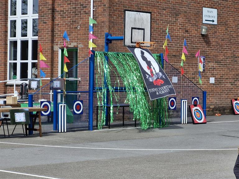 Team Teulu with support from the staff, pupils and members of the Little Troopers Club at Ysgol Gynradd Baglan Primary School, welcomed Service children/young people from other local schools to their Forces Festival.